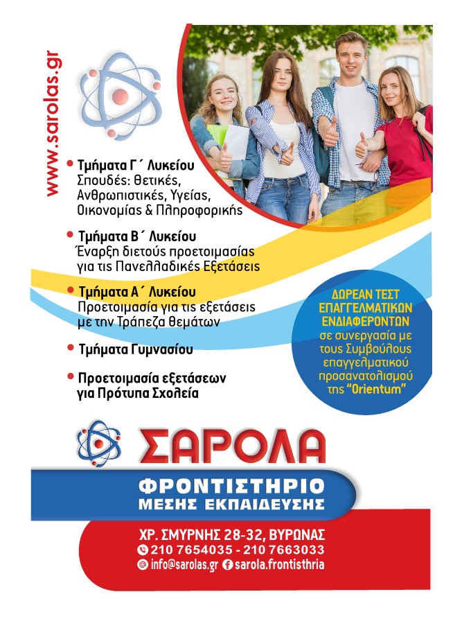 © Copyright 2025 Φροντιστήρια Σάρολα